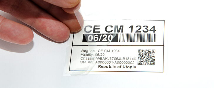 A third license plate sticker / windshield number plate label is an effective way against manipulation, forgery and car theft. Furthermore it can be used as a proof of a vehicle registration.